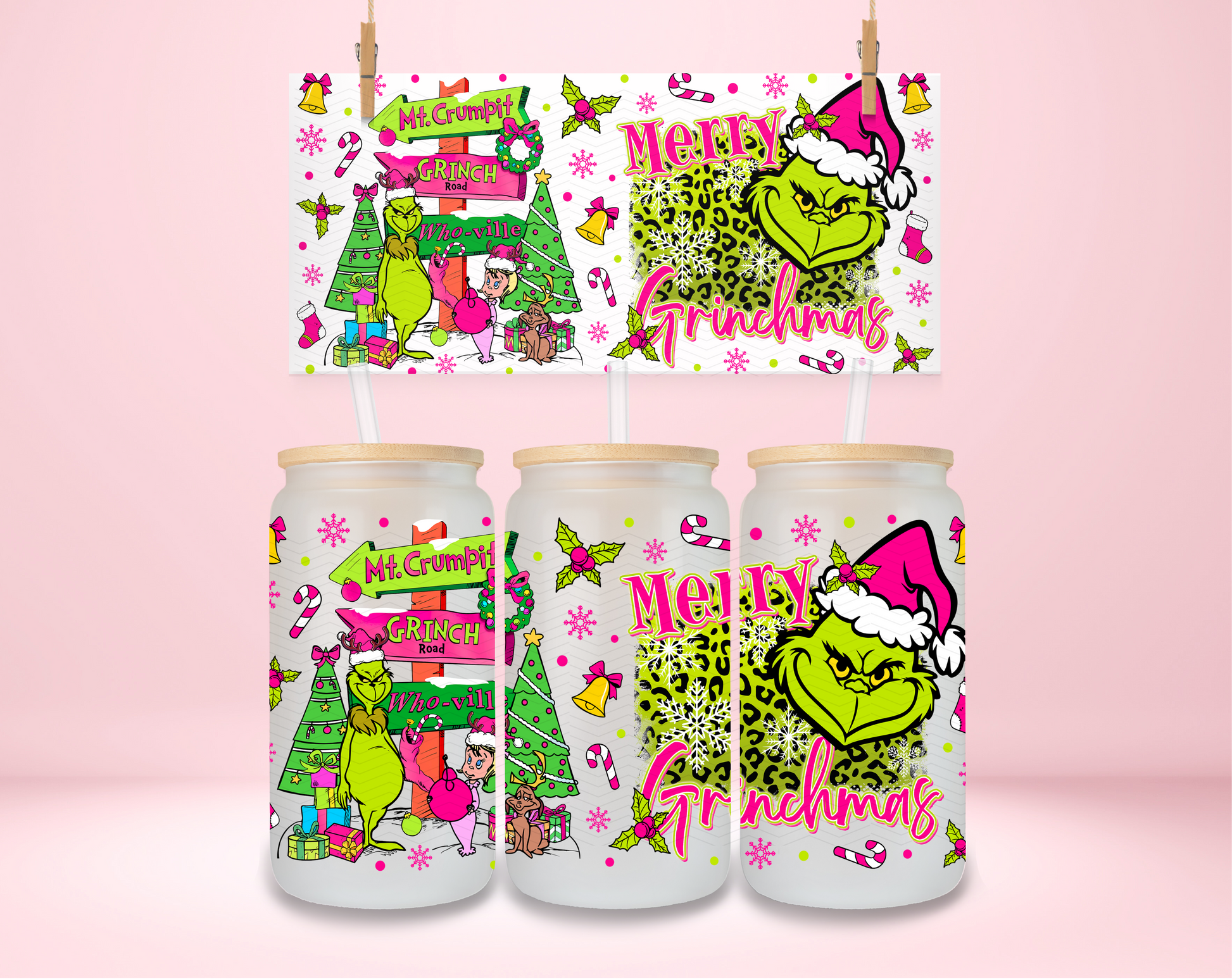 Pink Merry Grinchmas UVDTF Wrap