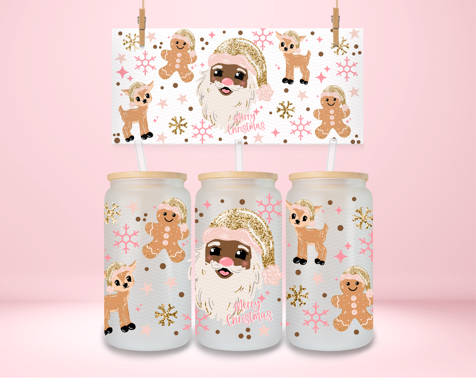 Glitter Santa Dark Skintone Double Sided UVDTF Wrap