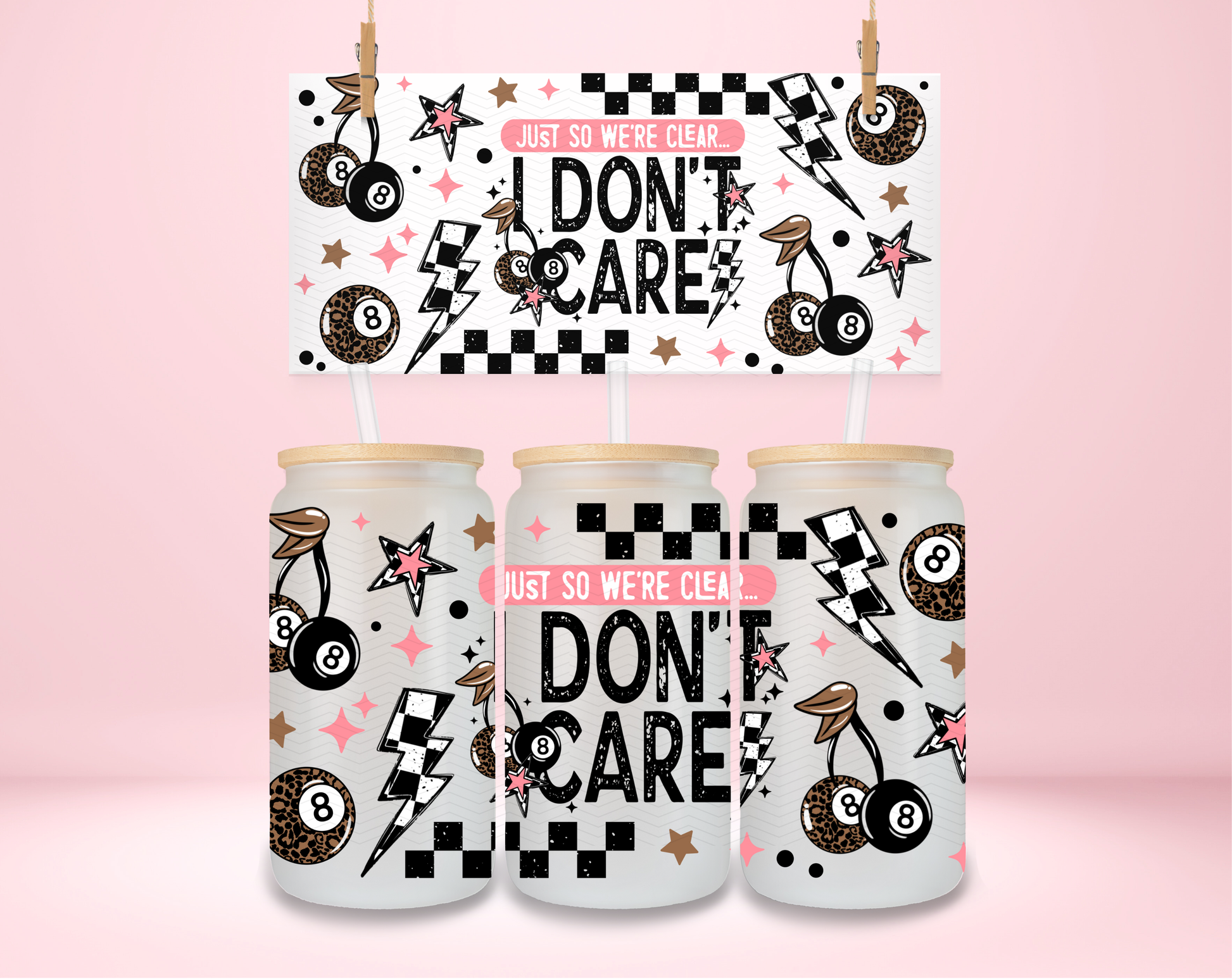 I Don't Care Leopard 8 Ball UVDTF Wrap