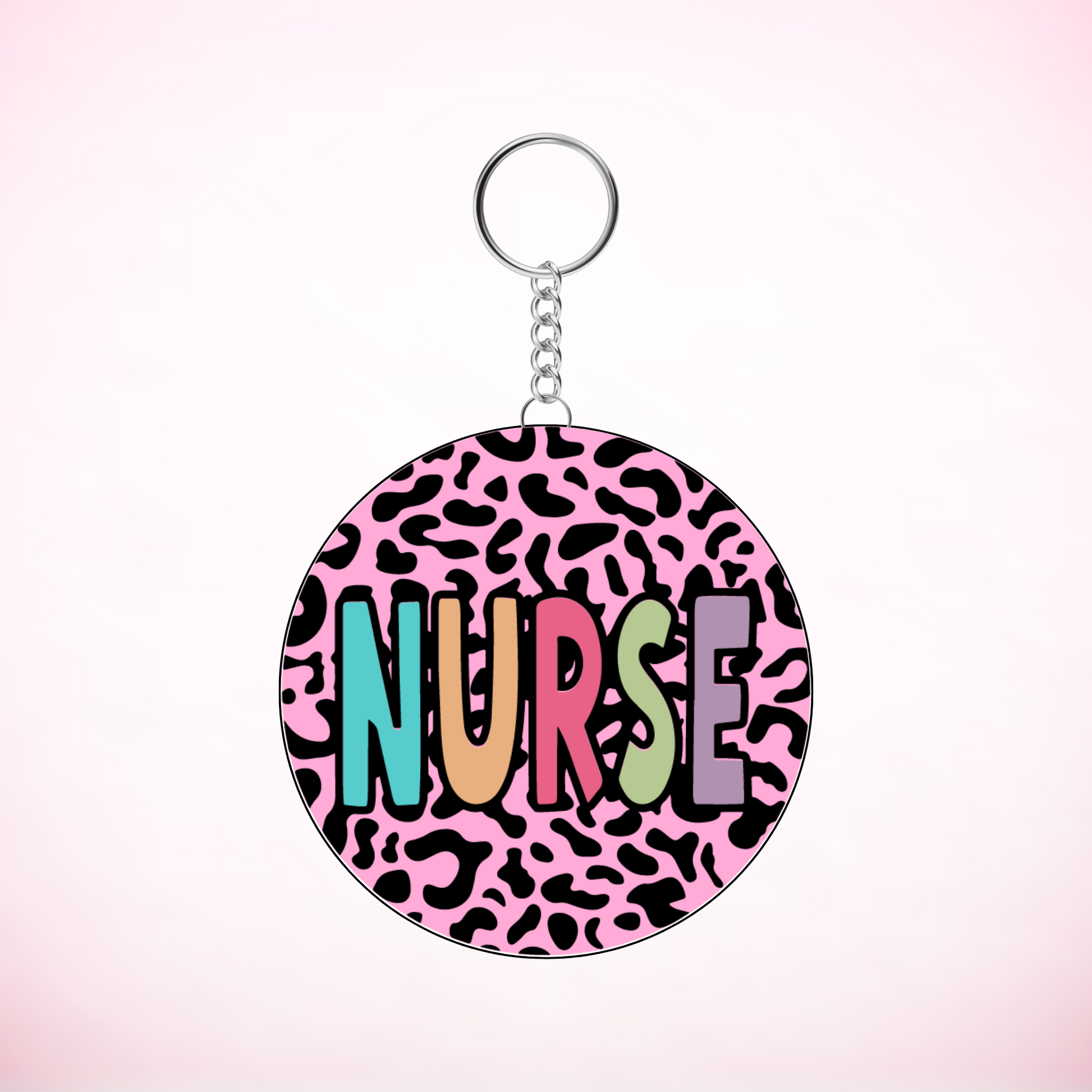 Nurse Pink Cheetah Round Keychain UVDTF Decal